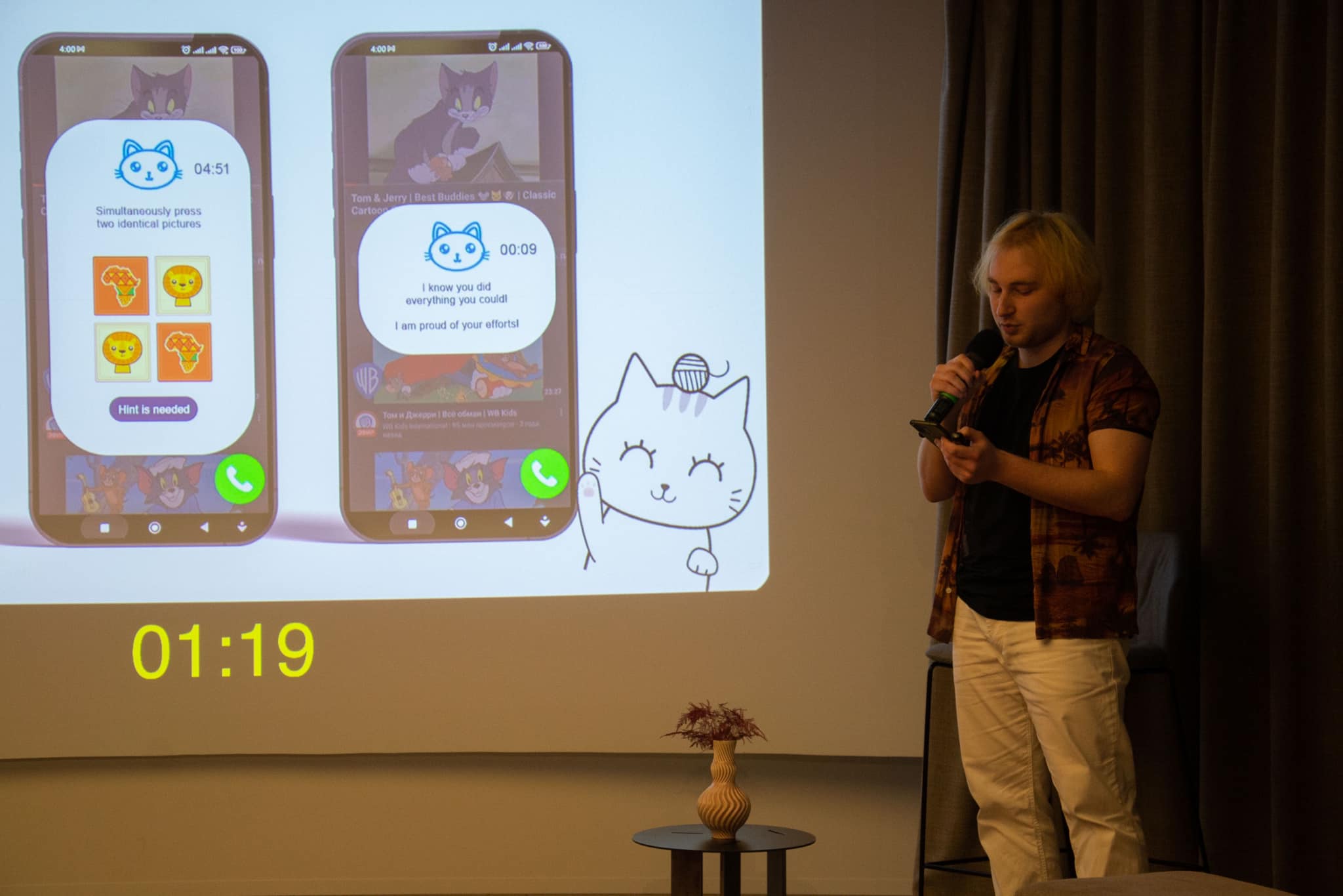🥈2 місце зайняла команда Олег Наконечний зі стартапом Cat Eyes, який дозволяє батькам обмежити час, проведений дітьми перед екраном, і забезпечити їх когнітивними або фізичними вправами під час перерв, щоб вони могли продовжувати користуватися своїми гаджетами. 📱